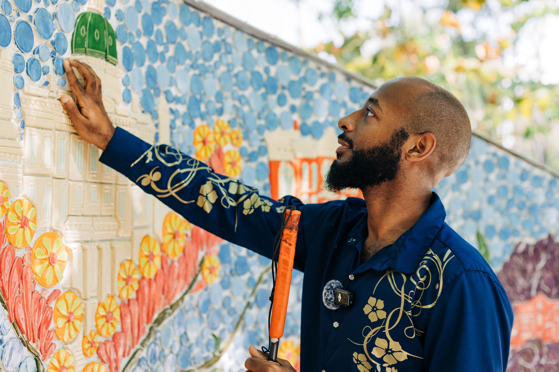 Created by lead artist Liz Richter and with the help of ceramicist Kristen Falkirk, and disability inclusion specialist, Darren Harbour, this tactile mural tells the neighborhood’s story along a winding road that symbolizes the passage of time. Landmark buildings rise like wildflowers, surrounded by botanicals chosen to reflect Clifton’s organic growth and creative spirit.